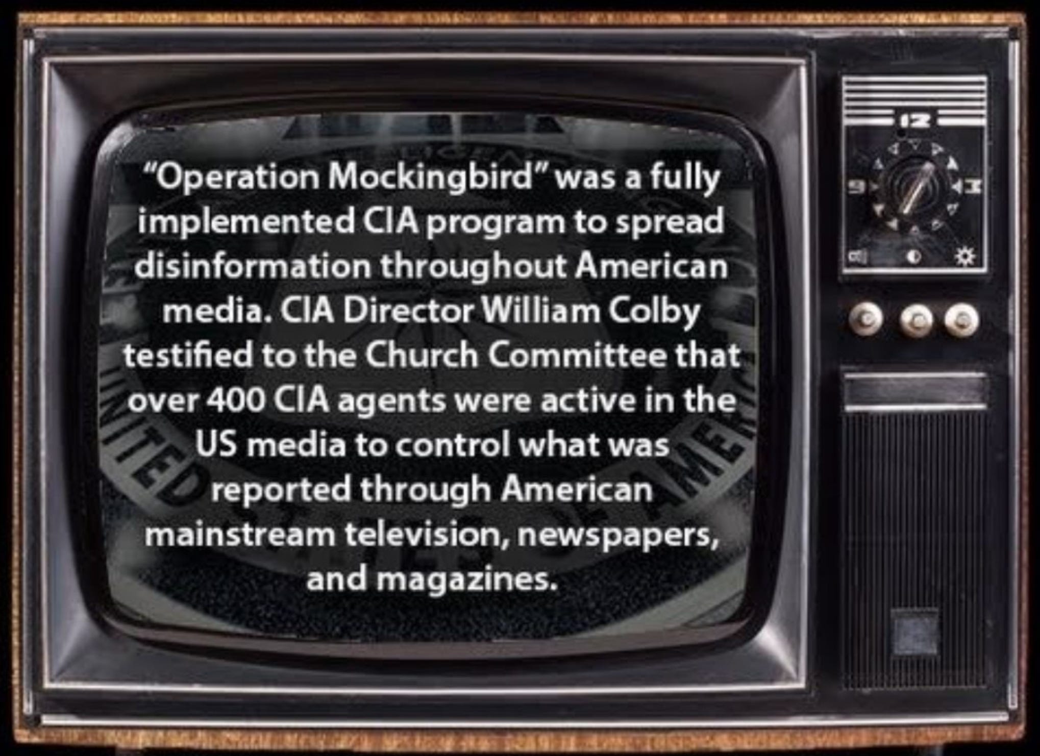 With the media influencers being owned by small handful of people they control the narrative. They (the CIA) gave us the Tell- A-Vision with regularly scheduled Programming. We think nothing of it. We sit down, numb out and get entertained. The propaganda is everywhere, not just the news but also in the shows, information books commissioned and the history books written by the victors of the wars.